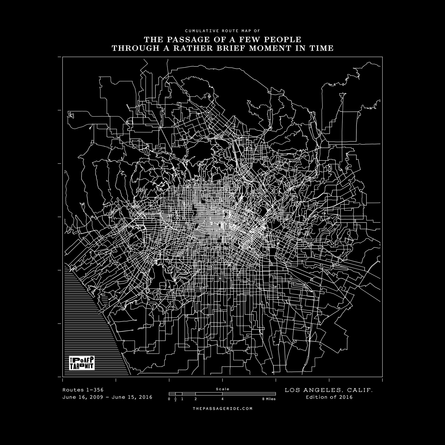 Since 2009, The Passage of a Few People Through a Rather Brief Moment in Time has explored far-flung areas of Los Angeles on bike. Departing from Koreatown's California Donuts #21, each Wednesday night we set out on a unique route based around a different theme. Sometimes historical, sometimes conceptual, often nonsensical, sometimes a game, our routes aim to give participants a balance between seeing new things and seeing old things anew. Convinced that bicycle infrastructure encompasses much more than bike lanes and river paths, we climb hills, wander off-road, and venture underground to bring out the hidden and unexpected connections between otherwise disconnected places.